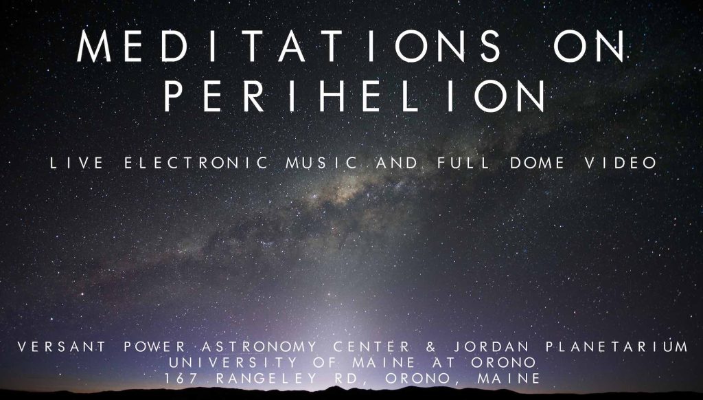 On Saturday, December 10th the Versant Power Astronomy Center and Jordan Planetarium will present “Meditations on Perihelion”, a live performance of original electronic music and immersive visuals on the planetarium’s … Continue reading Meditations on Perihelion